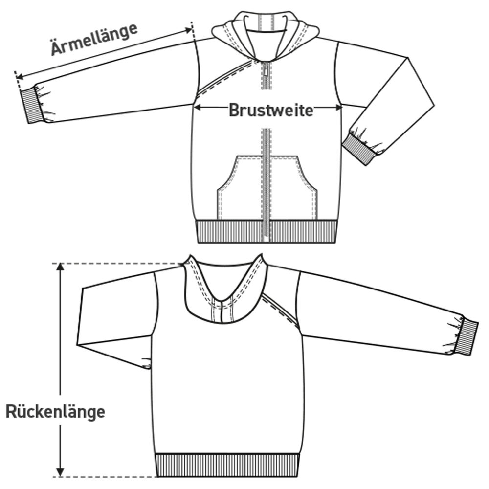 | Kapuzzenjacke Unisex | XS | S | M | L | XL | 2XL | 3XL |