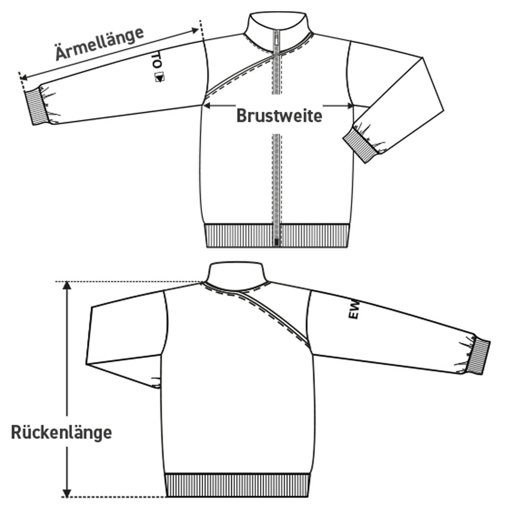 | Ärmellänge | 63 cm | 64 cm | 65 cm | 66 cm | 67 cm | 68 cm | 69 cm |